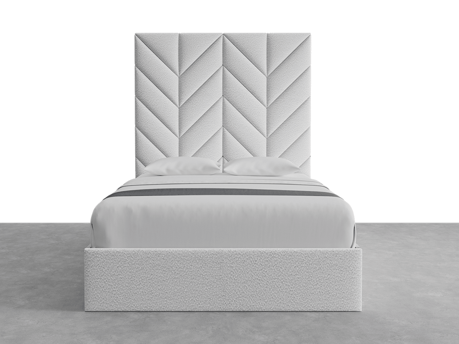 We recommend mounting the chevron panels right above the base of your bed. However, the panels are freestanding and can be mounted at your preferred point.